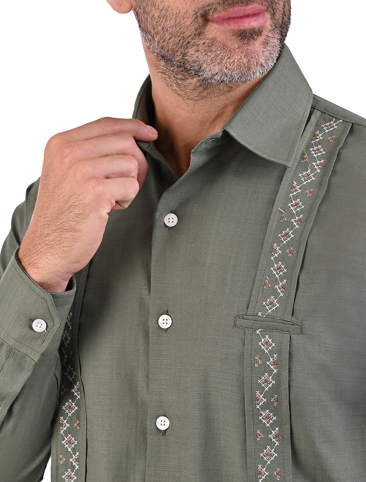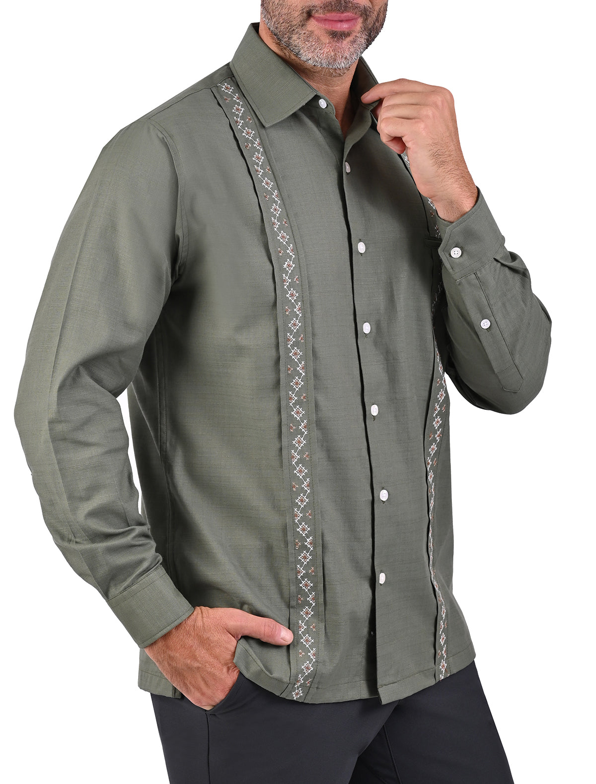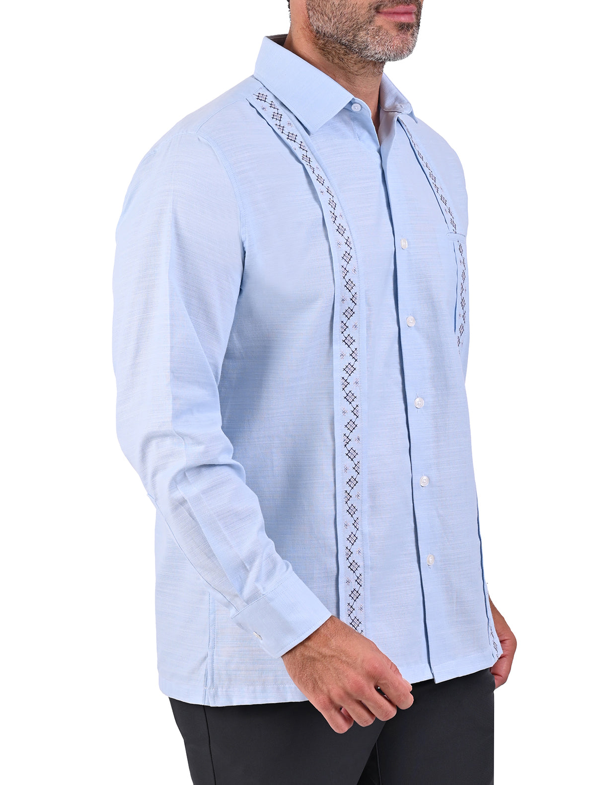 Conoce la Guayabera de Manga Larga Mariscal, una prenda versátil que combina estilo y comodidad. Perfecta para cualquier ocasión, esta guayamisa te permitirá lucir impecable.