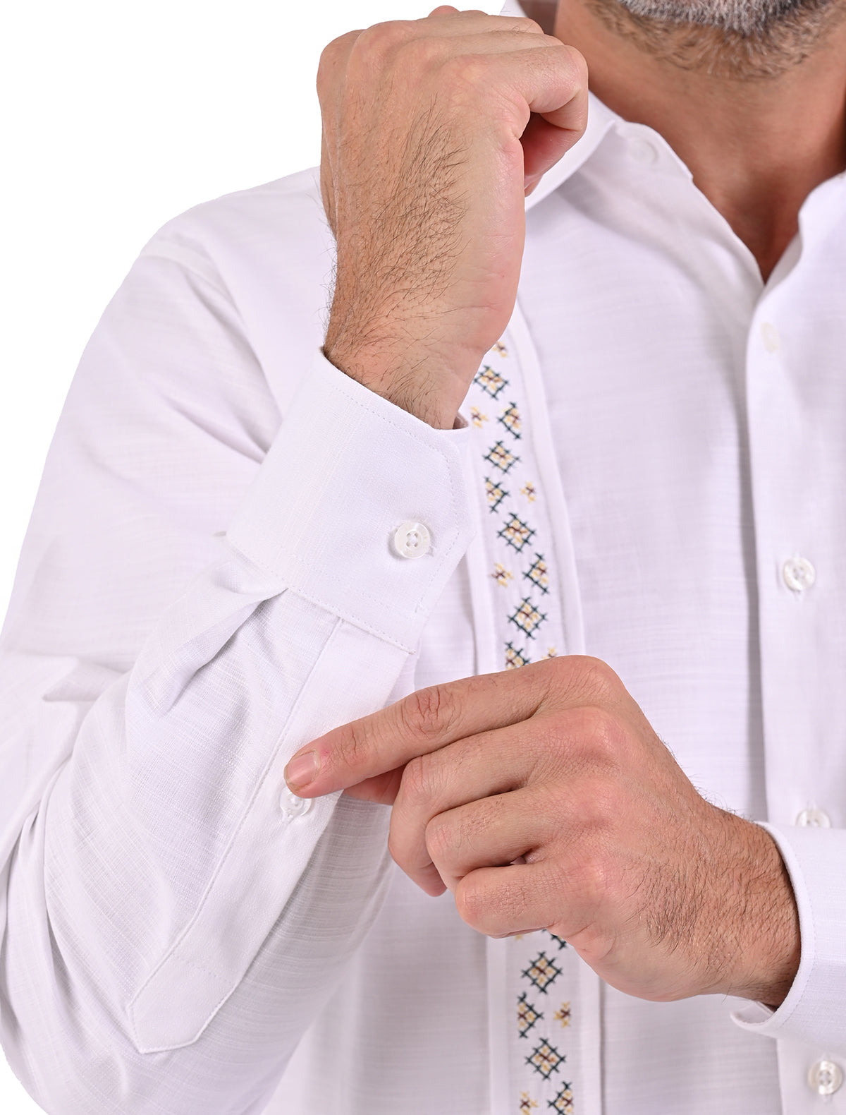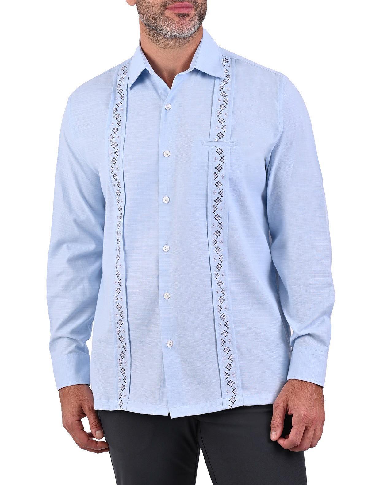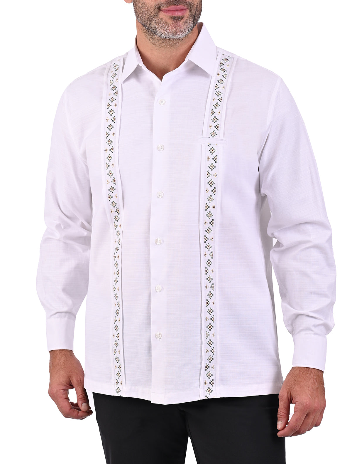 Conoce la Guayabera de Manga Larga Mariscal, una prenda versátil que combina estilo y comodidad. Perfecta para cualquier ocasión, esta guayamisa te permitirá lucir impecable.