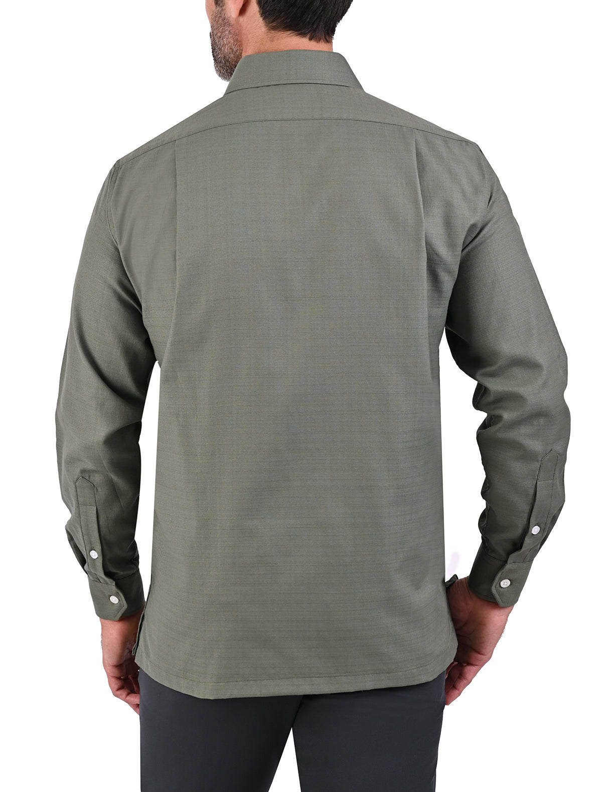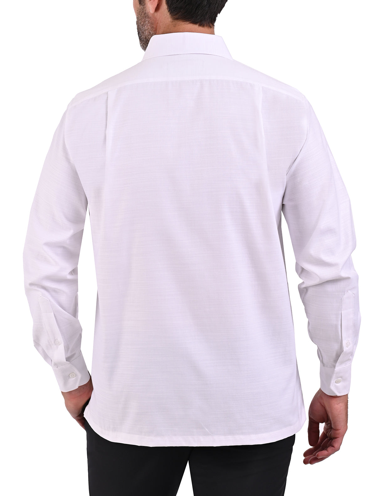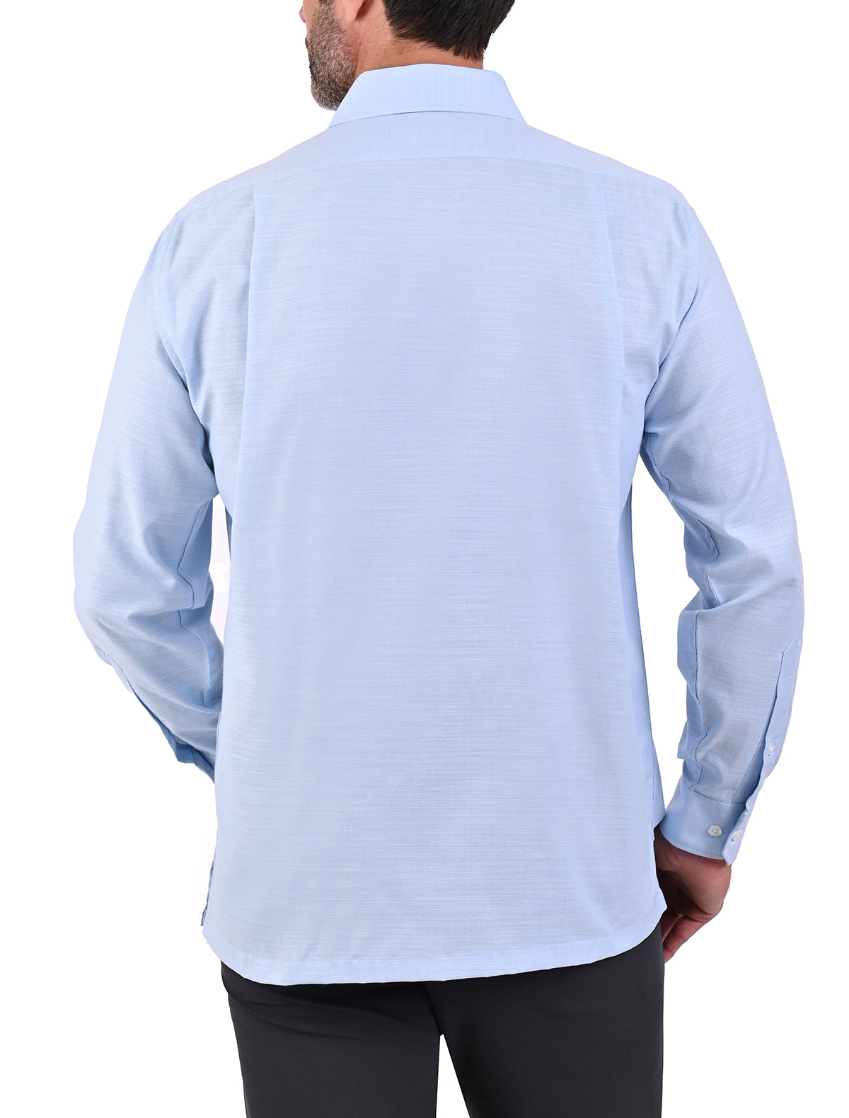Elaborada en una mezcla de 50% algodón y 50% poliéster, esta Guayabera ofrece un diseño liso y elegante, además de ser fácil de cuidar y resistente a las arrugas, lo que la convierte en una opción ideal para tu día a día.