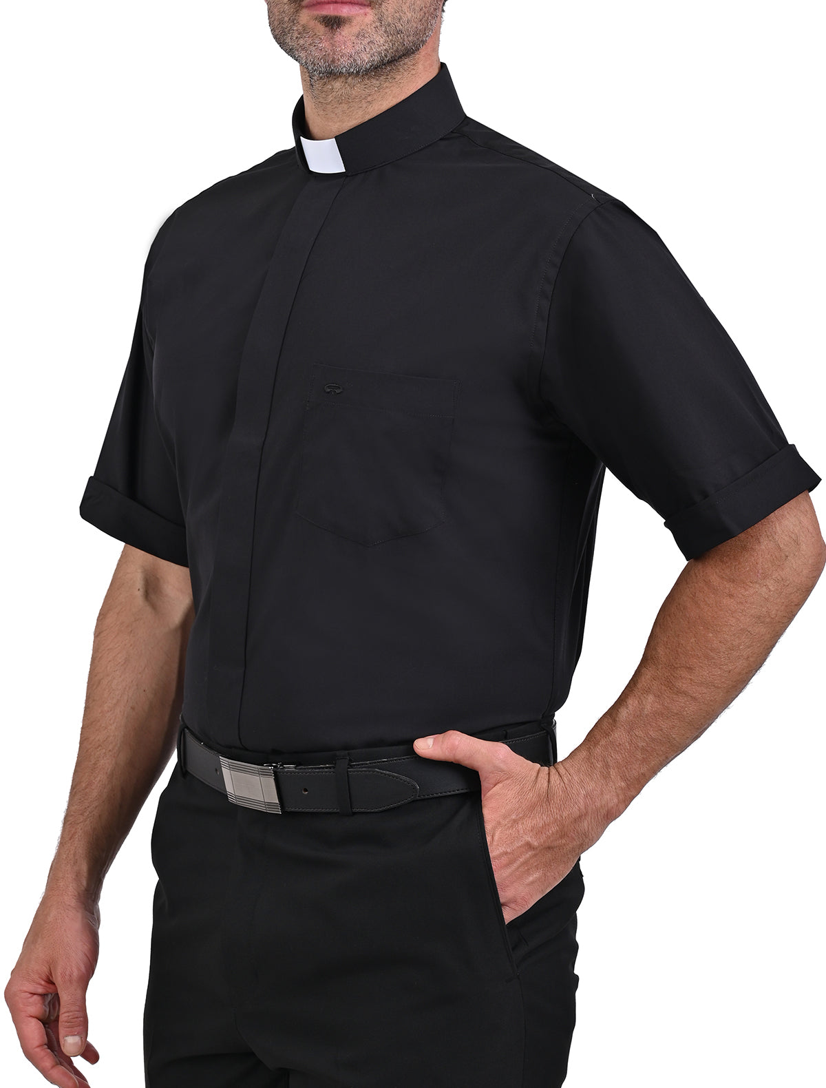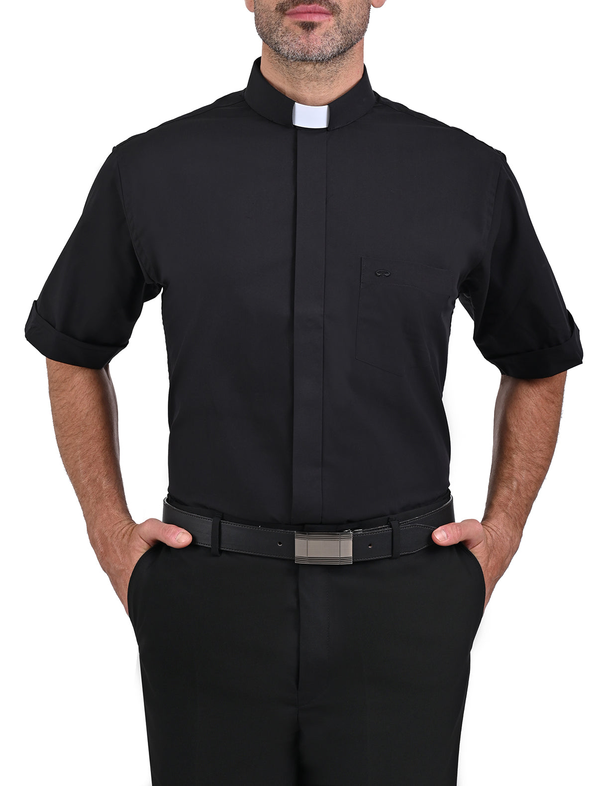 Las camisas clericales con manga corta son esenciales para el clero, combinando comodidad y reverencia. Fabricadas en algodón o poliéster, presentan el distintivo cuello romano. Disponibles en varios colores, son perfectas para ceremonias religiosas y uso diario