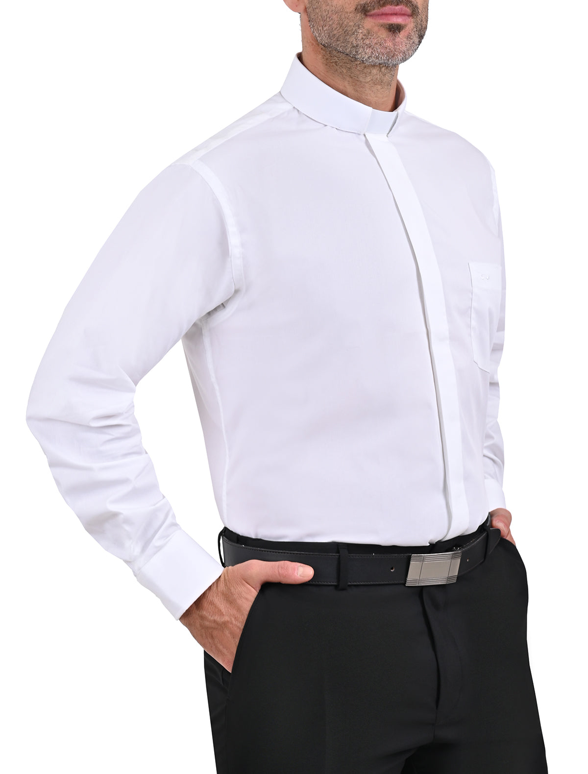 Las camisas clericales con manga larga son esenciales para el clero, combinando comodidad y reverencia. Fabricadas en algodón o poliéster, presentan el distintivo cuello romano. Disponibles en varios colores, son perfectas para ceremonias religiosas y uso diario