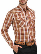 Camisa Vaquera Para Hombre Con Líneas en Corte americano