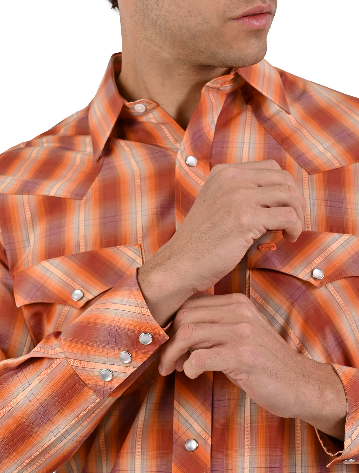 Camisa Vaquera Mariscal Naranja con líneas en Corte Americano