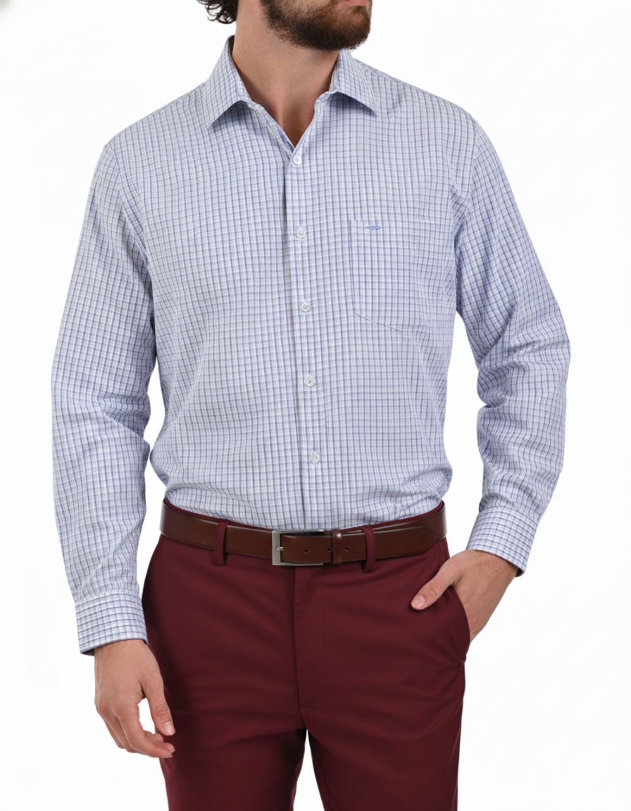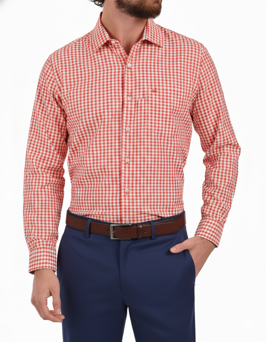 Camisa Casual Mariscal en Manga Larga con cuadros Corte Americano