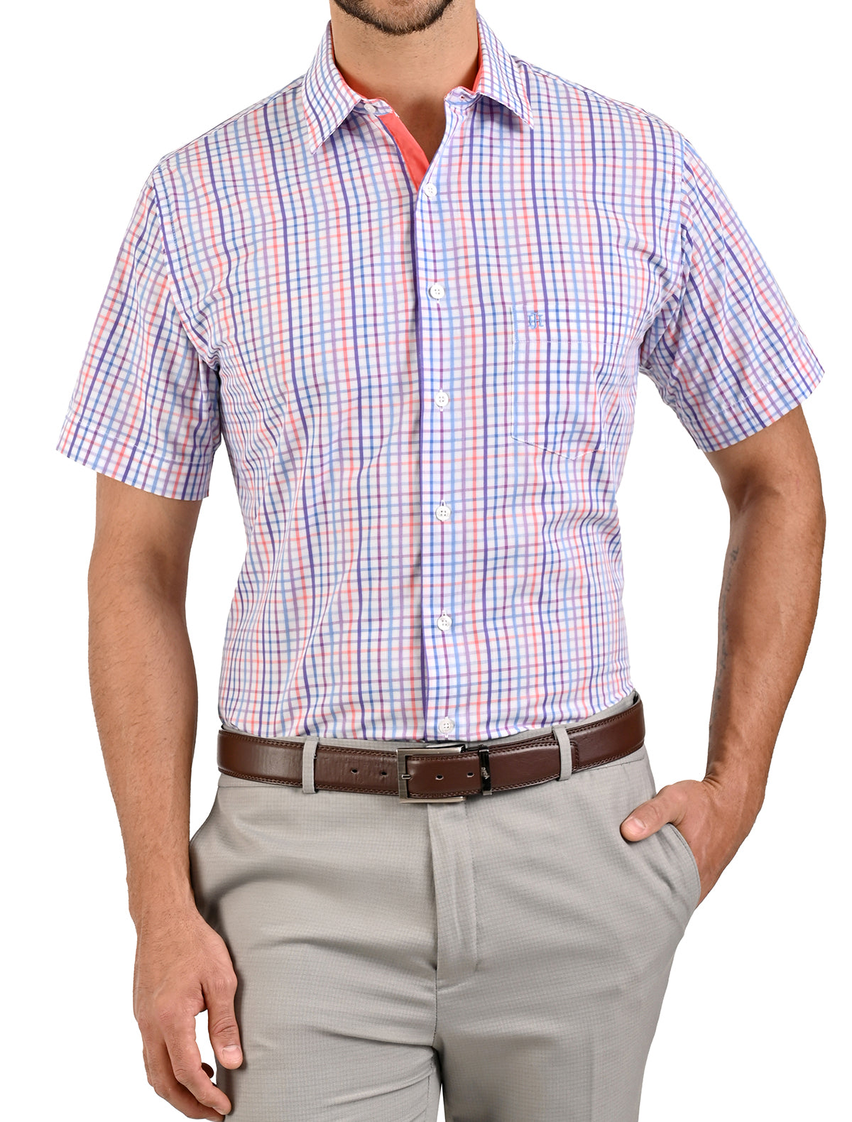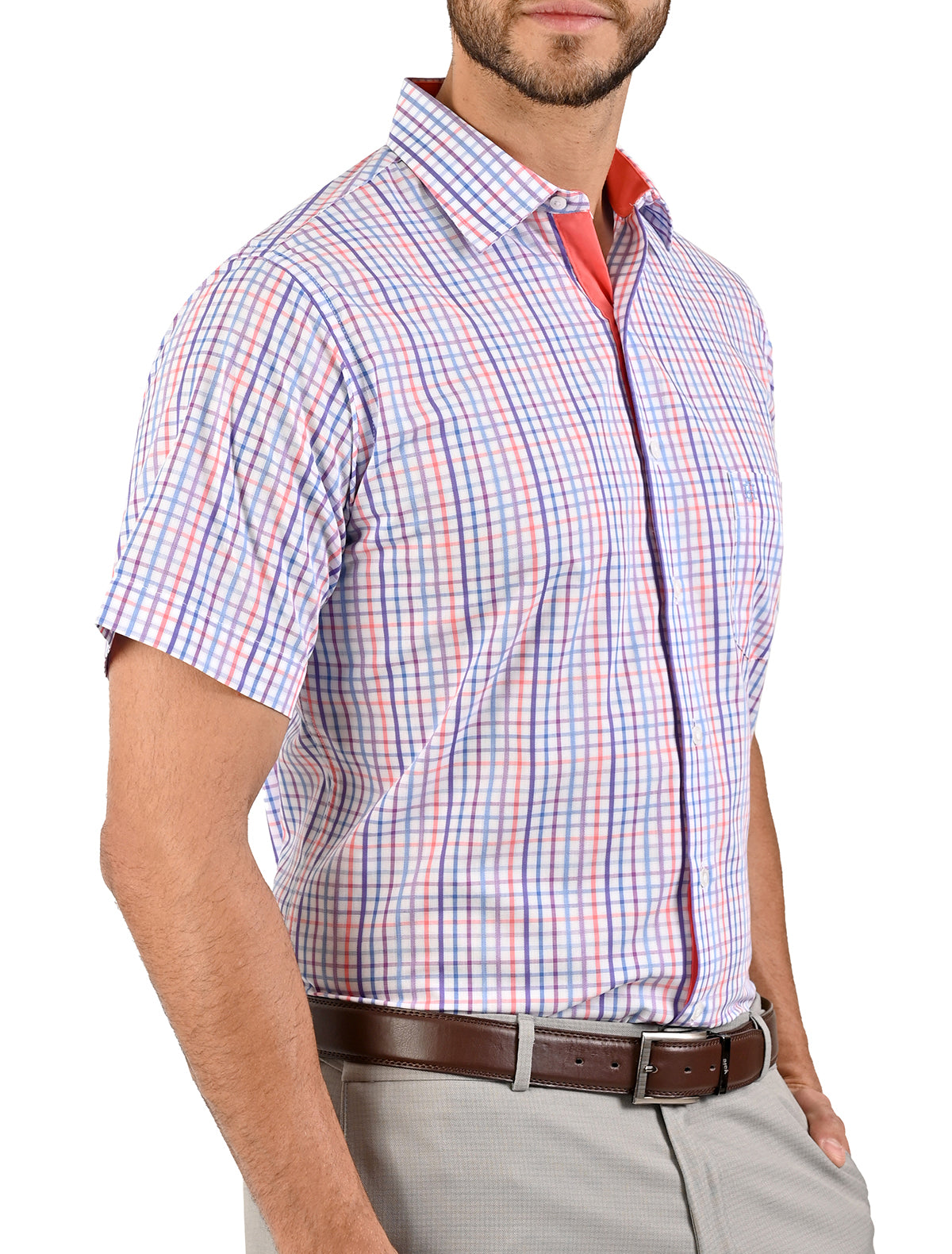 Camisa Casual Manga Corta Con Líneas en Corte Comfort John Henry