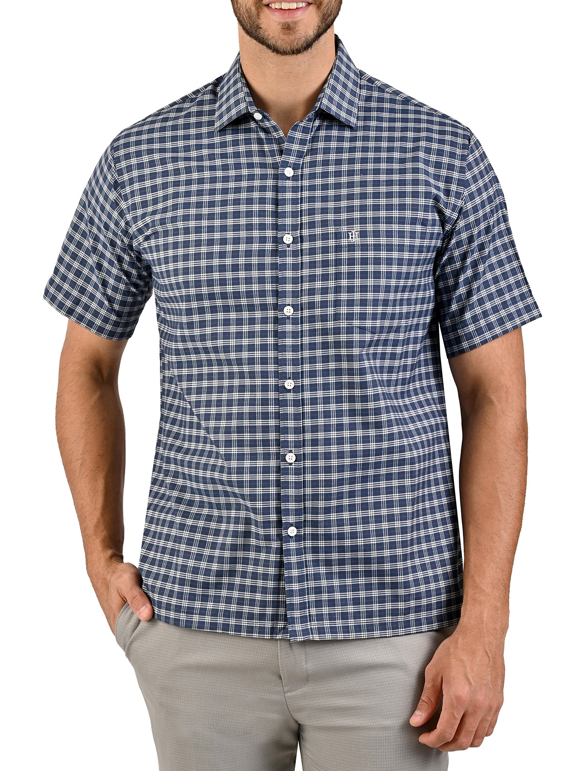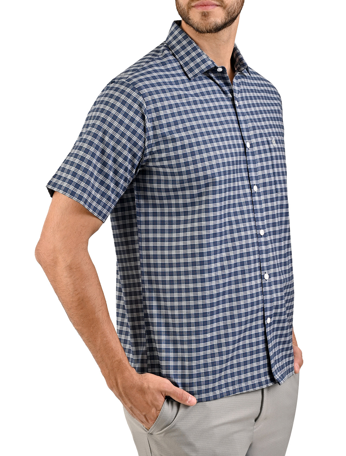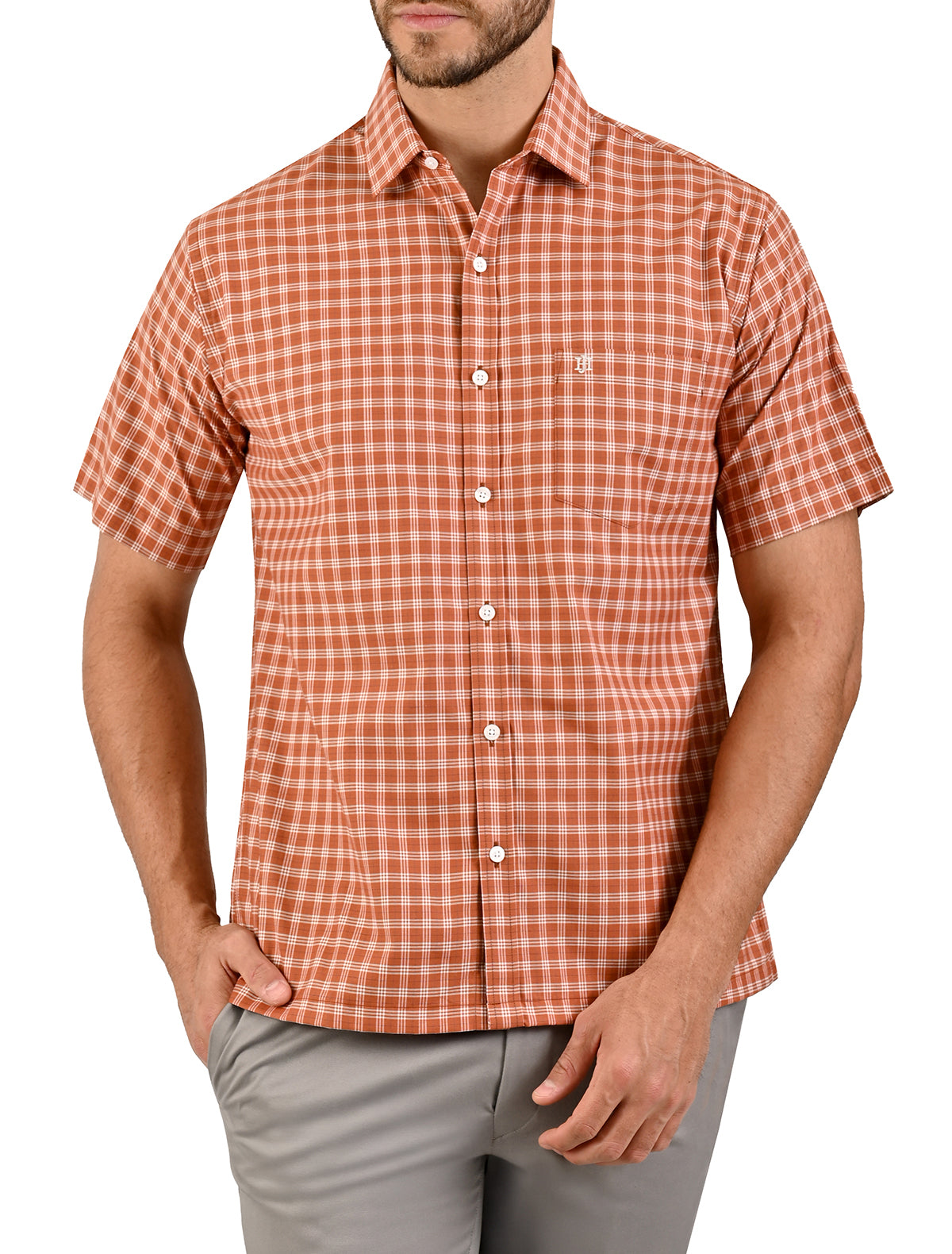 Camisa Casual Manga Corta Con Líneas en Corte Comfort John Henry