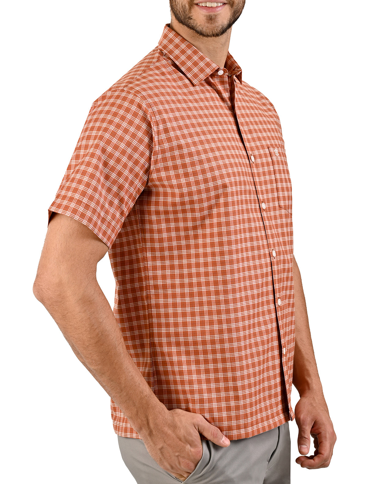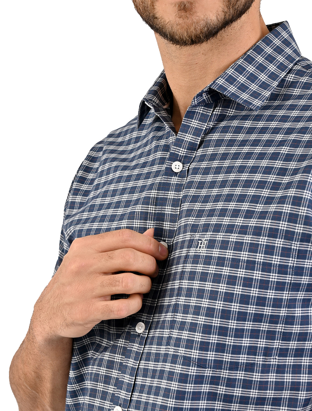 Elaborada con 50% algodón y 50% Poliéster. Su diseño con líneas te hará destacar en cualquier ocasión. Con un práctico bolsillo, esta camisa es perfecta para un look casual.