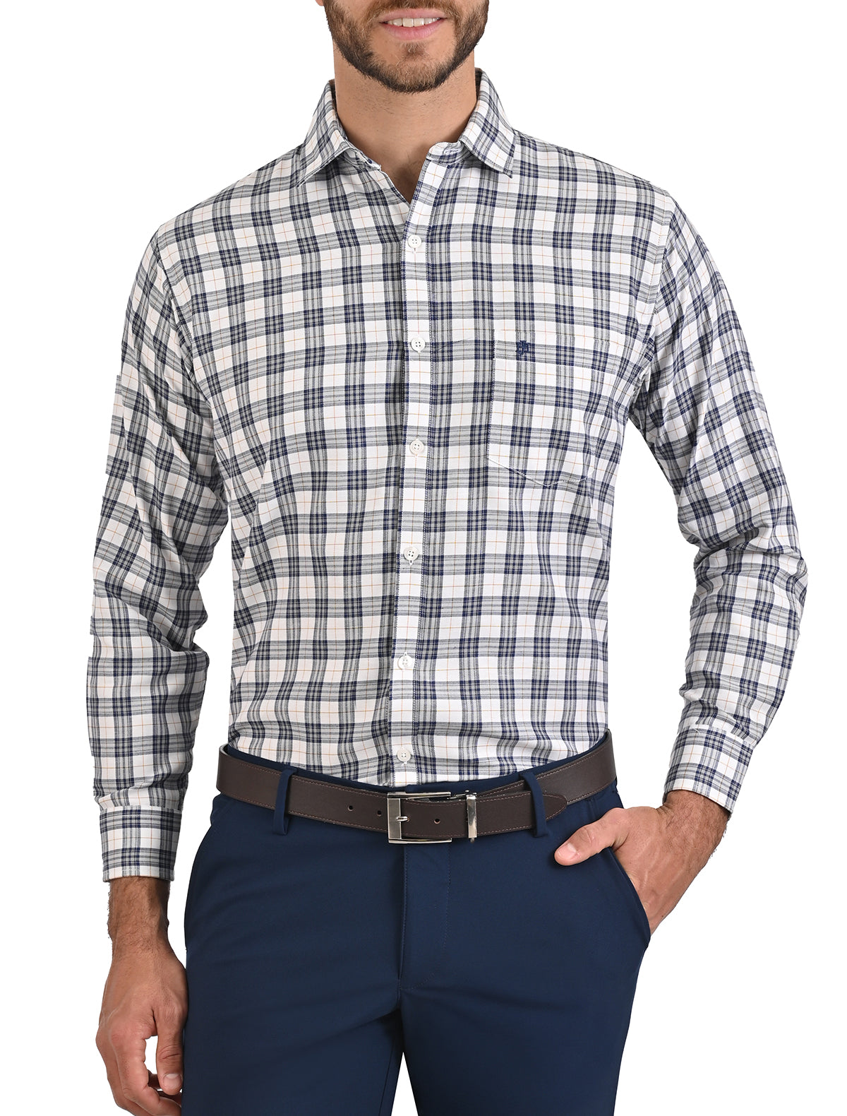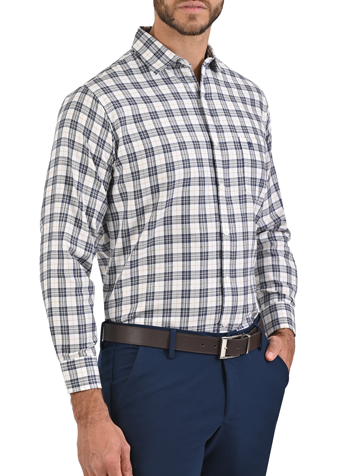 Camisa Casual Manga Larga Corte Comfort Con Cuadros John Henry