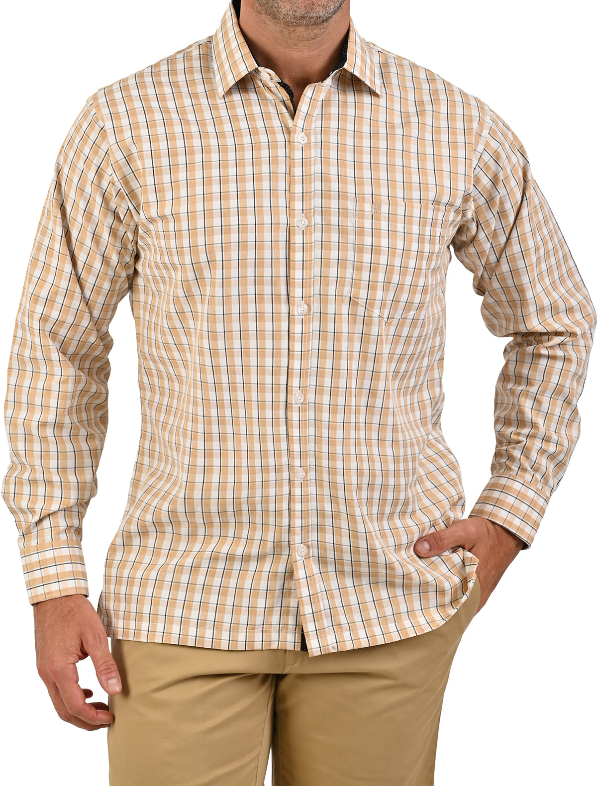 Camisa Casual Manga Larga Corte Comfort Con Cuadros John Henry