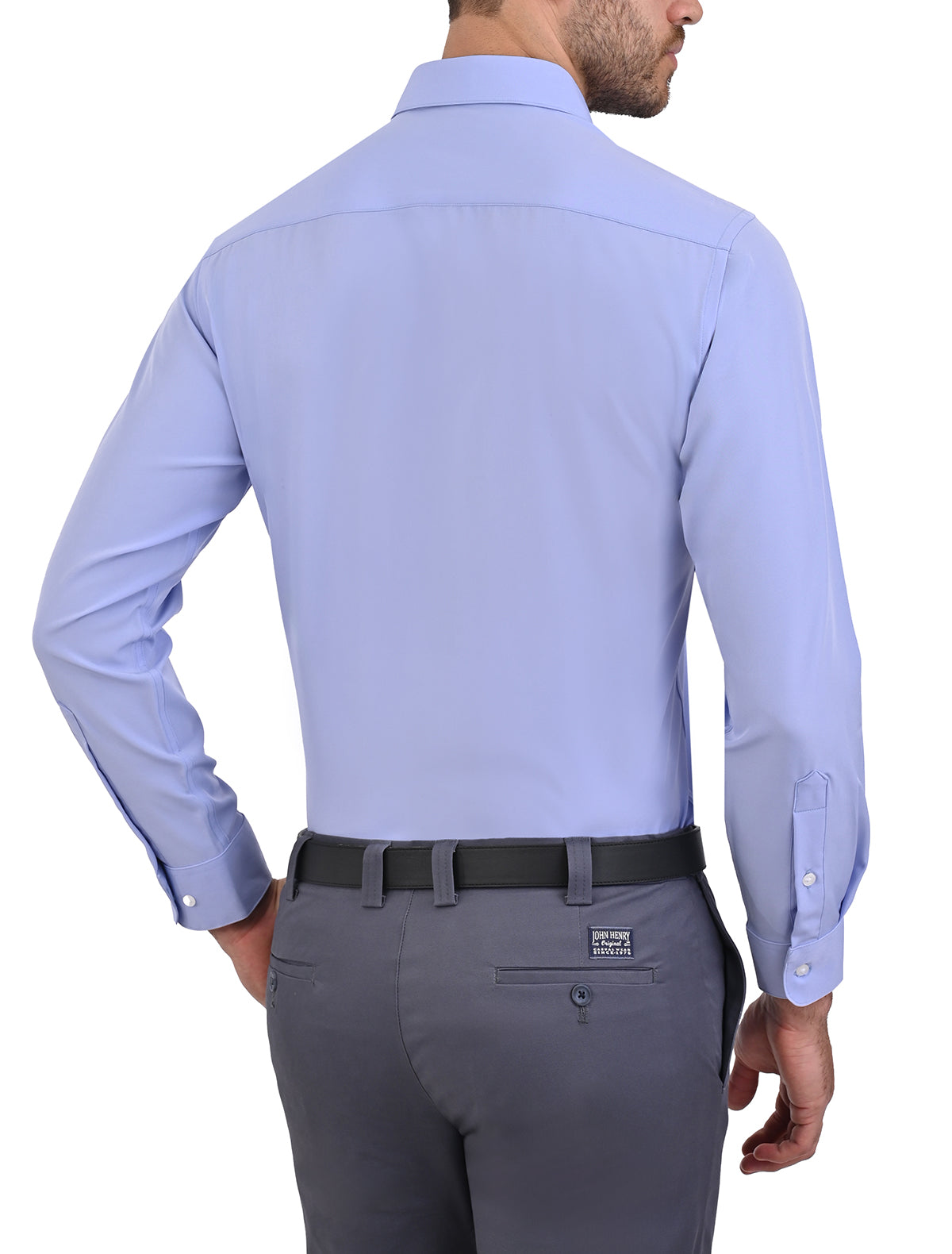 La camisa de vestir performance de John Henry en Corte Slim Fit es ideal para quienes buscan estilo y comodidad sin sacrificar la calidad. Su innovadora tela fabricada con fibras de PET recicladas garantiza durabilidad y resistencia, mientras que la tecnología "easy-care" simplifica su cuidado y mantenimiento.