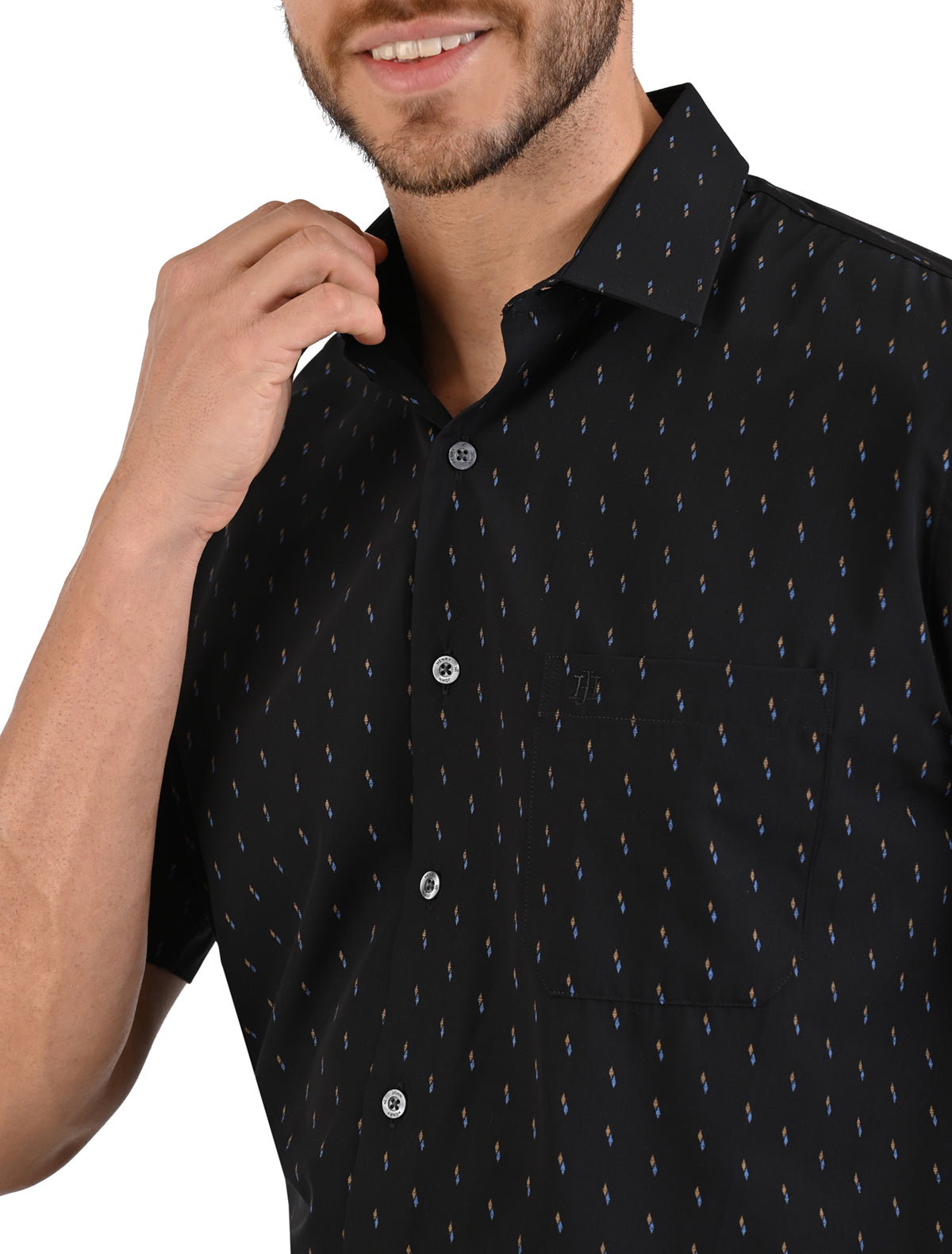 Elaborada con 50% Poliéster y 50% Bambú. Su diseño con estampado en blanco y negro no solo te mantendrá cómodo, sino que también te hará destacar en cualquier ocasión. Con un práctico bolsillo, esta camisa es perfecta para un look casual.
