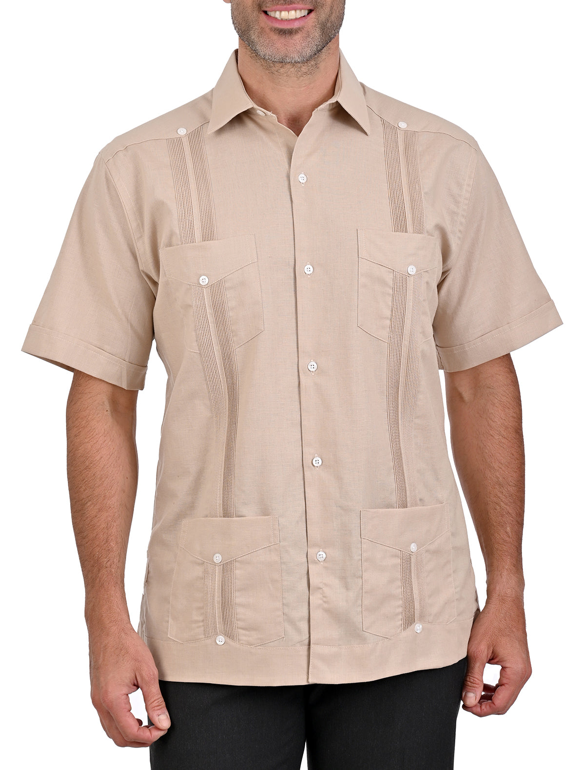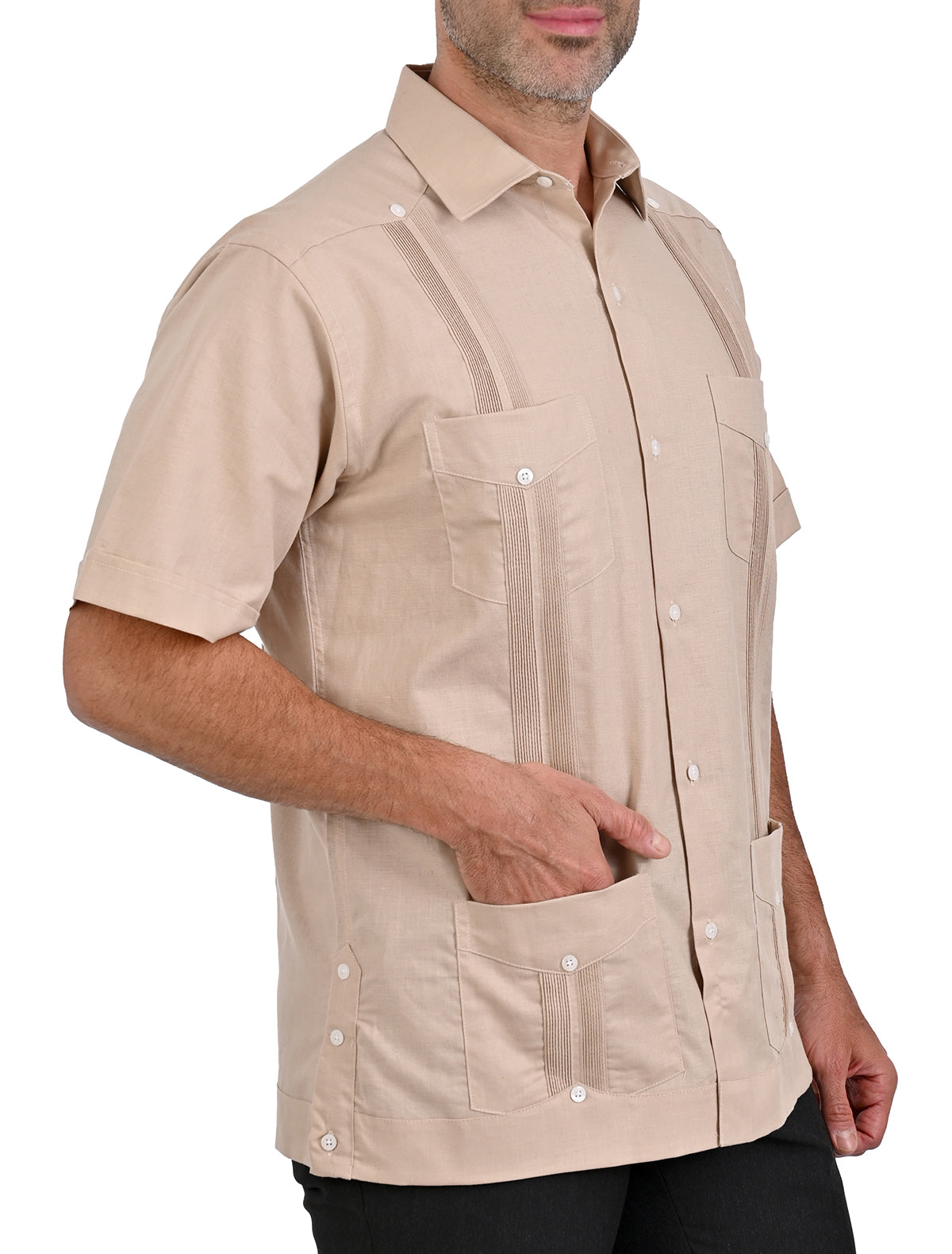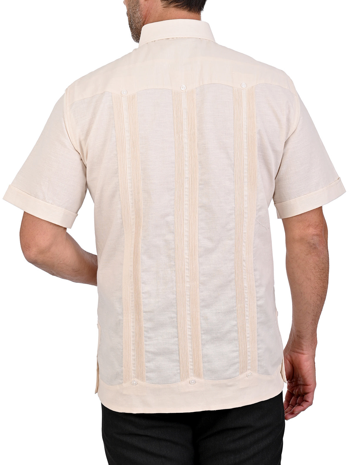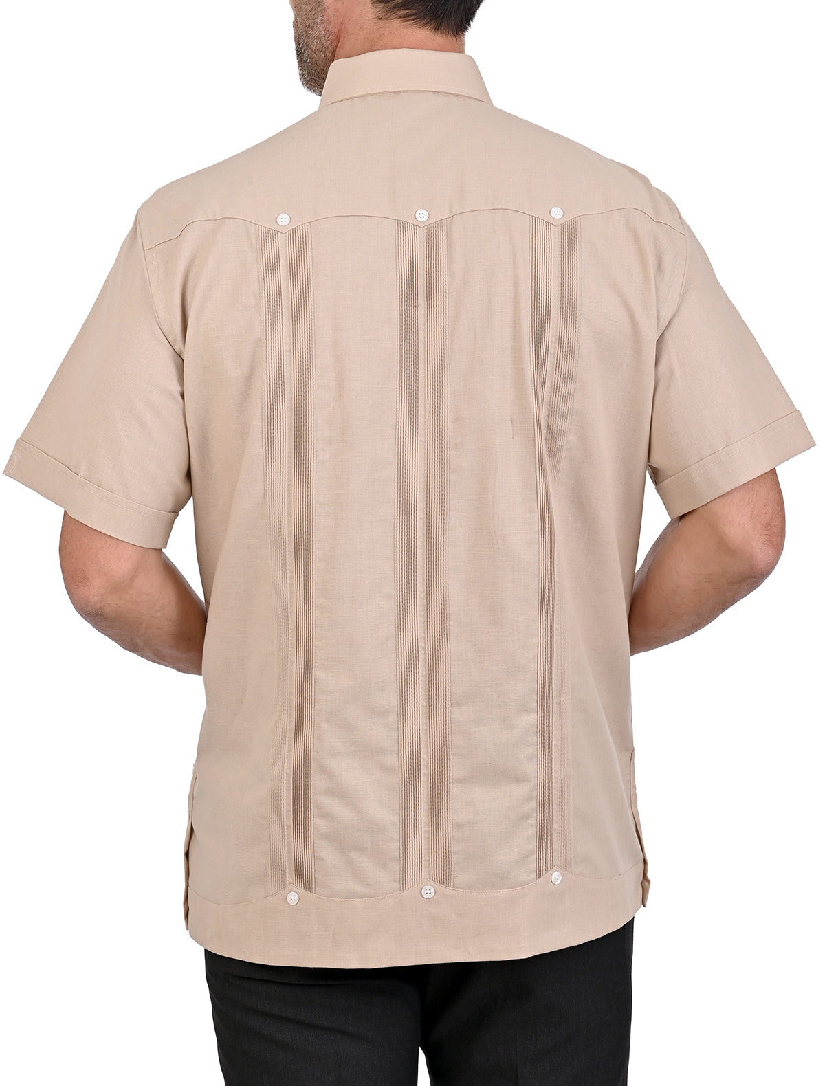El corte comfort asegura un ajuste cómodo y favorecedor, esta guayabera es la elección perfecta para lucir impecable en cualquier ocasión.