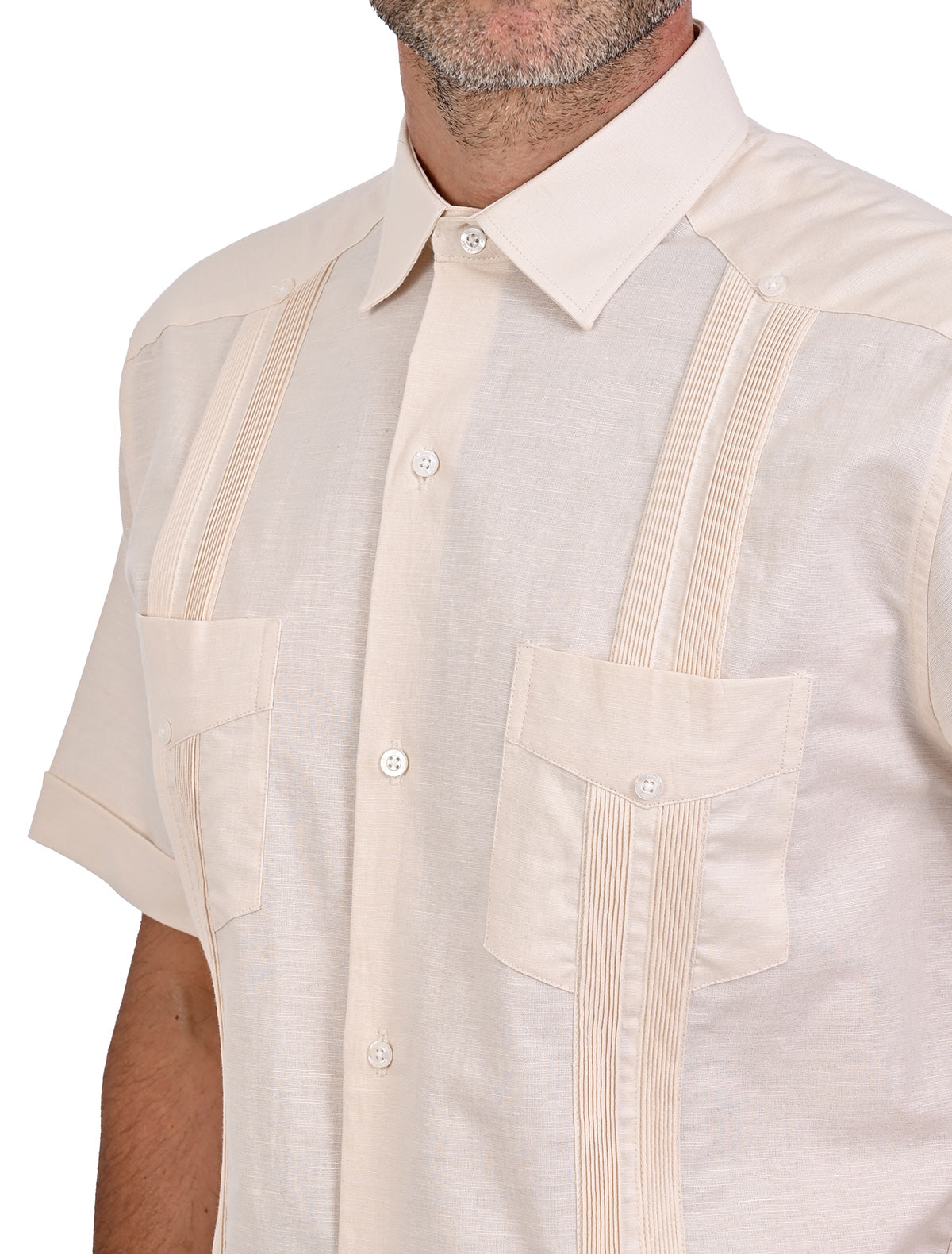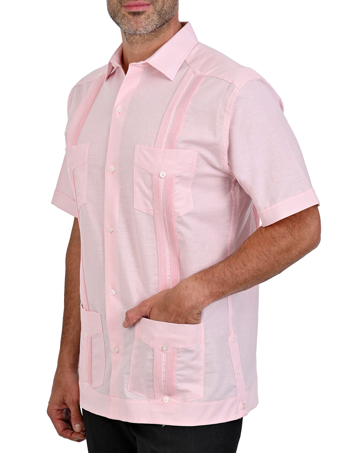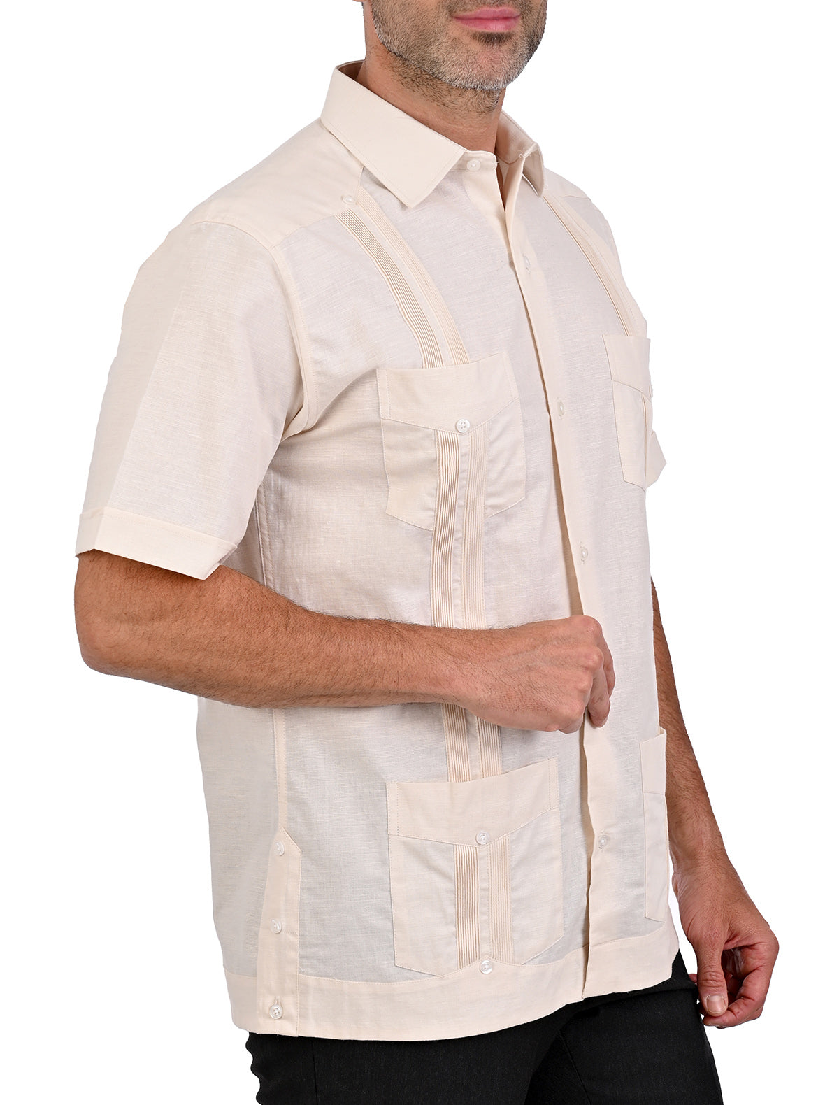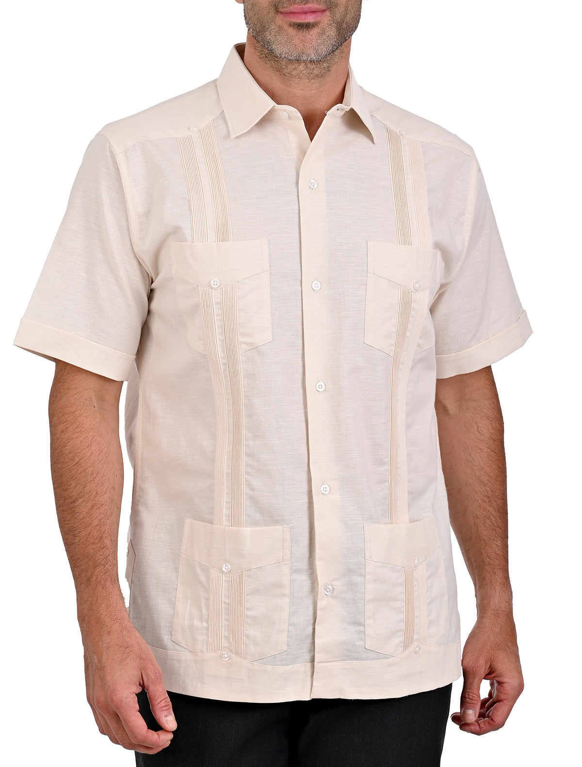 El corte comfort asegura un ajuste cómodo y favorecedor, esta guayabera es la elección perfecta para lucir impecable en cualquier ocasión.