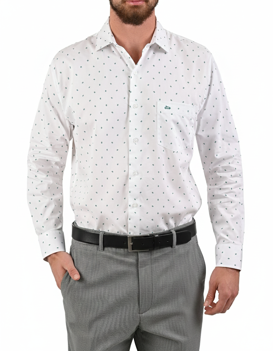 Camisa Casual Mariscal blanca con estampado en Corte Americano