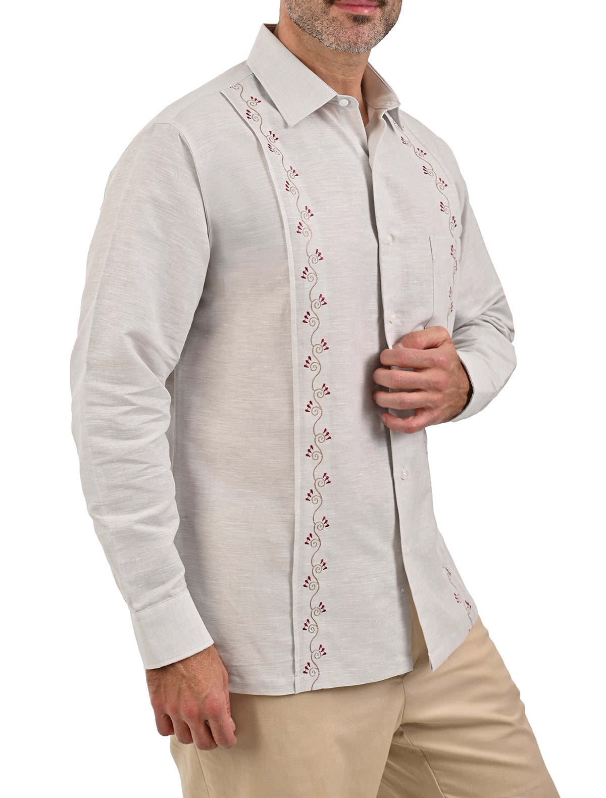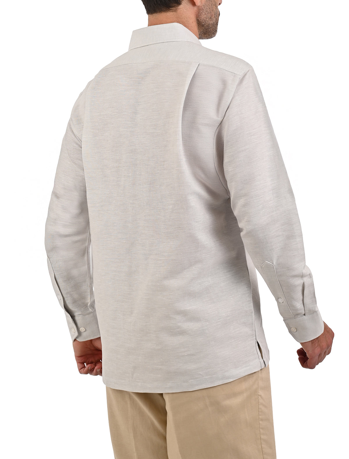 El corte americano de esta Guayabera asegura un ajuste cómodo y moderno, brindándote libertad de movimiento sin sacrificar el estilo.