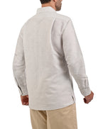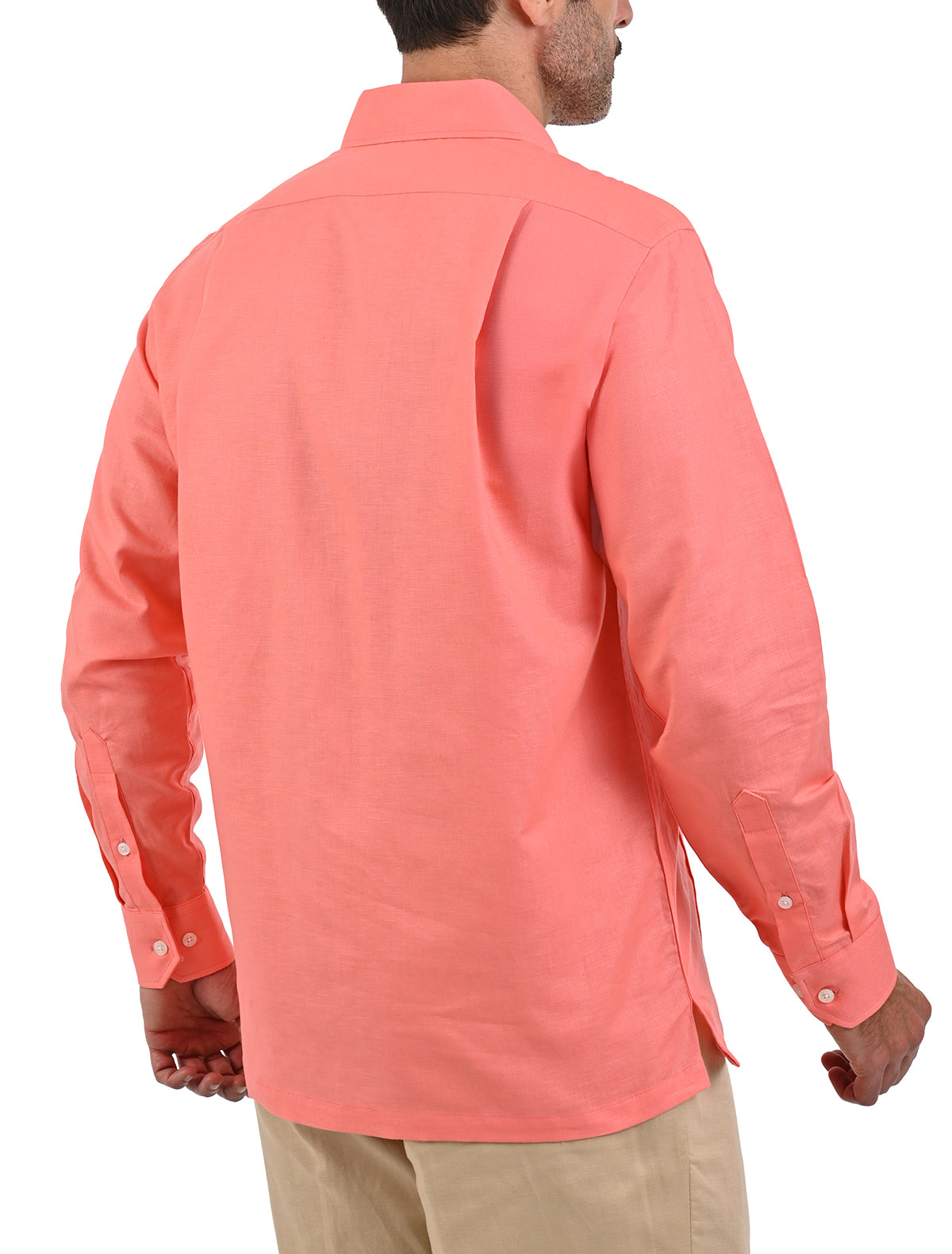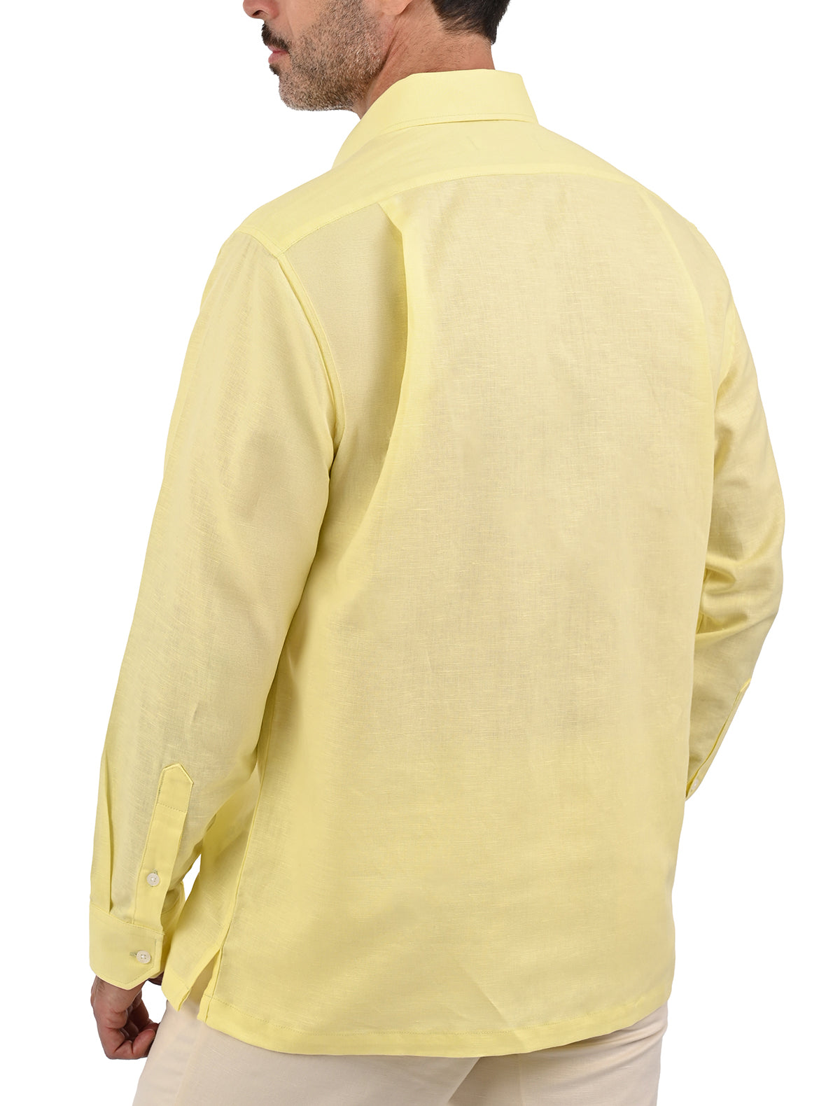 Elaborada en una mezcla de 55% lino y 45% algodón, esta Guayabera ofrece un diseño liso y elegante, además de ser fácil de cuidar y resistente a las arrugas, lo que la convierte en una opción ideal para tu día a día.