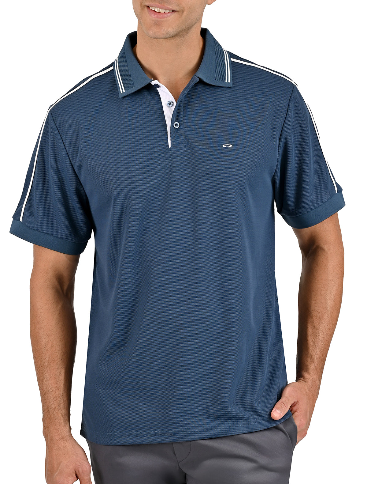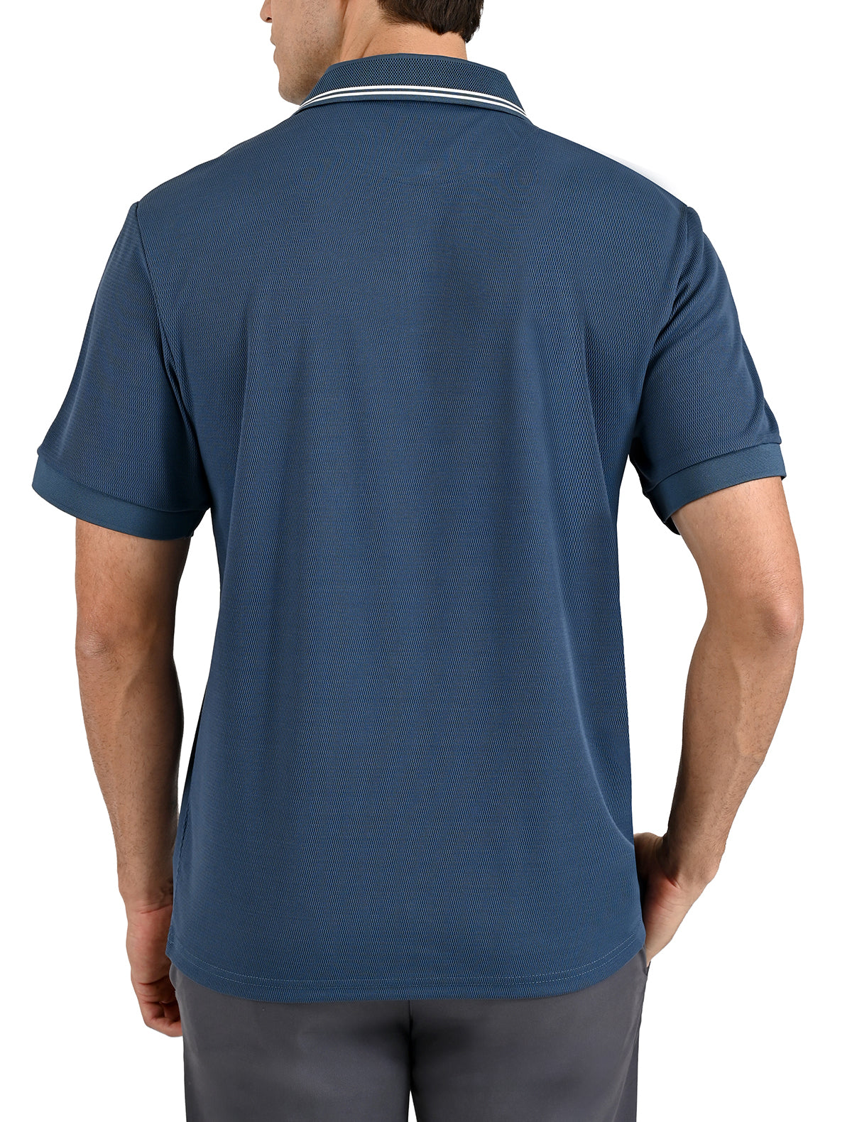 Esta playera polo combina una textura jacquard sofisticada con la funcionalidad de una prenda pensada para el uso diario.