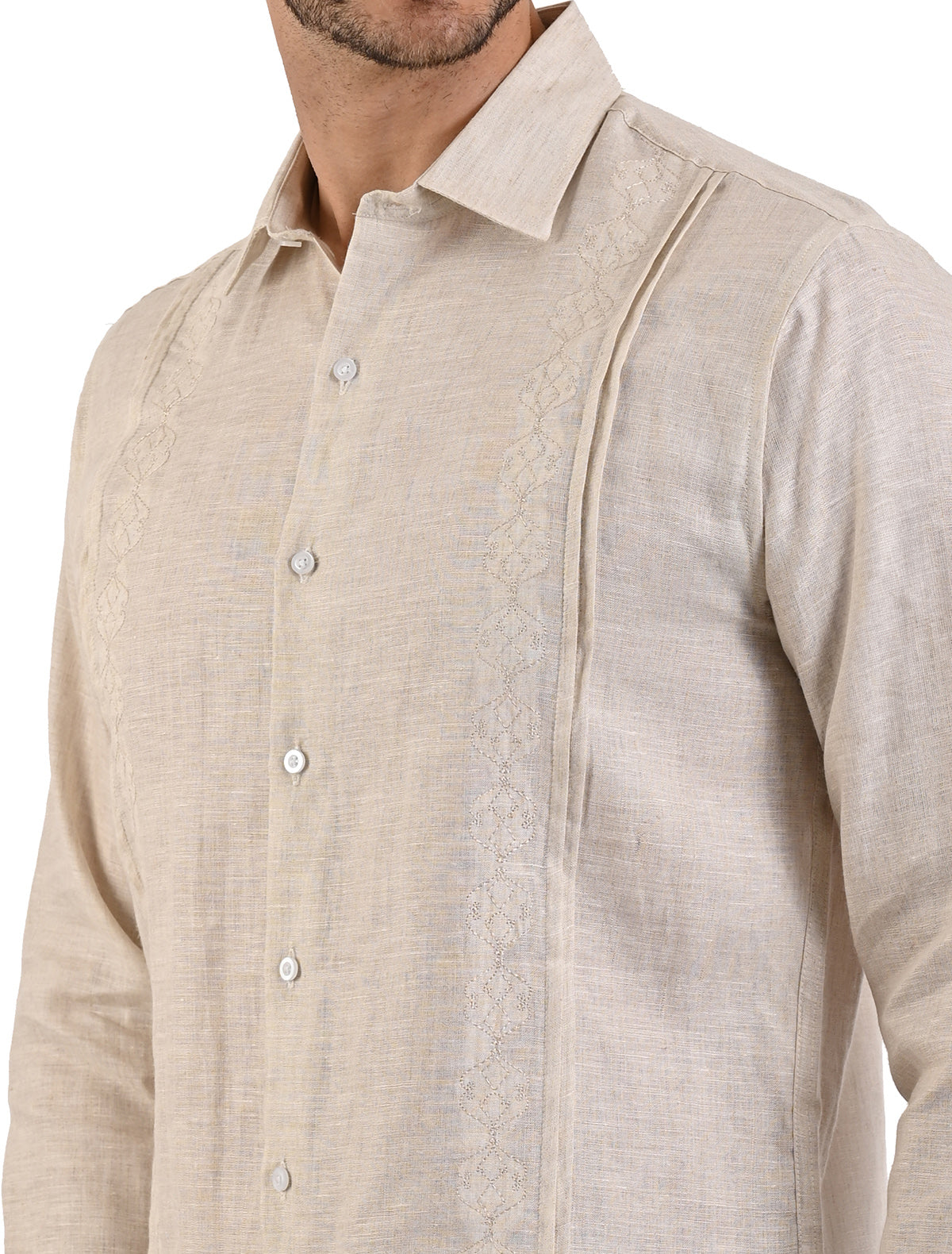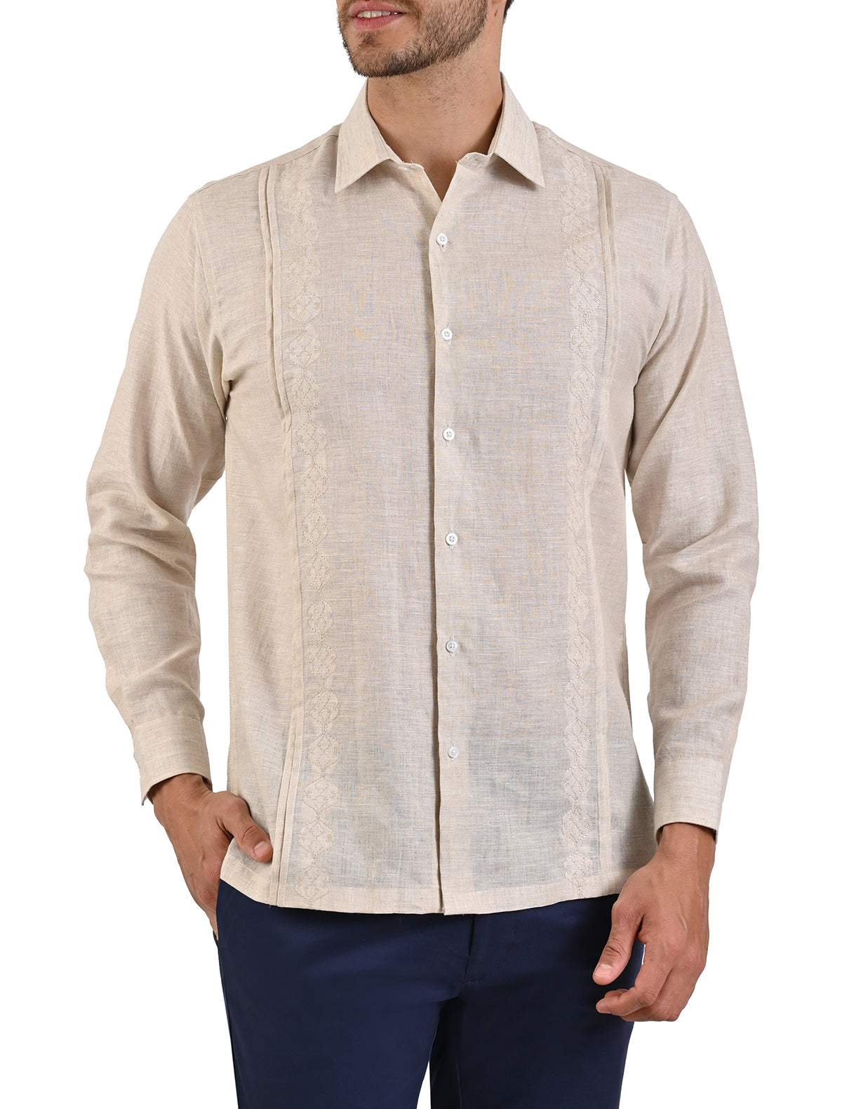 Guayabera 100% Lino Manga Larga en Corte Comfort Flamingo