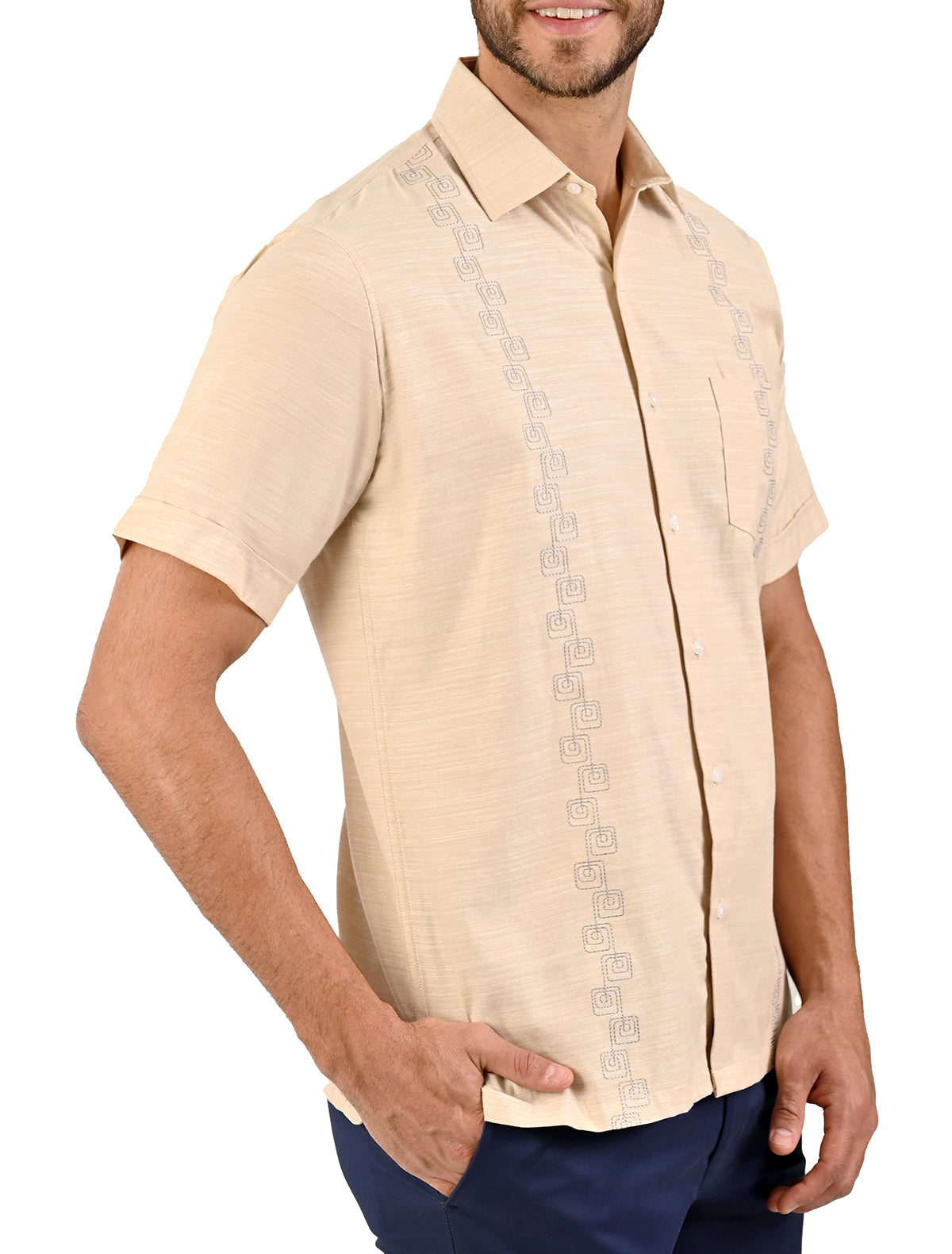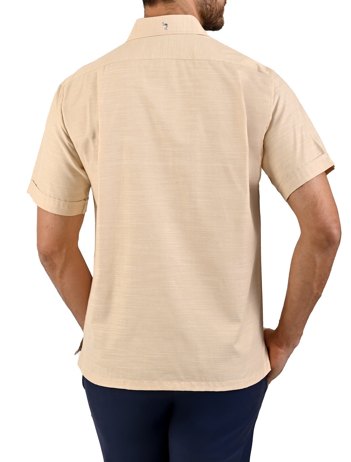 Descubre la guayabera Flamingo. Una prenda que combina comodidad y elegancia a la perfección. Ideal para cualquier ocasión casual.