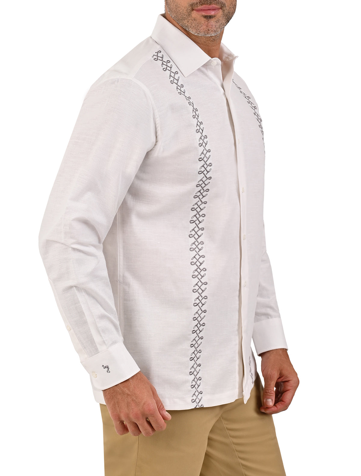 Descubre la guayabera Flamingo. Una prenda que combina comodidad y elegancia a la perfección. Ideal para cualquier ocasión casual.