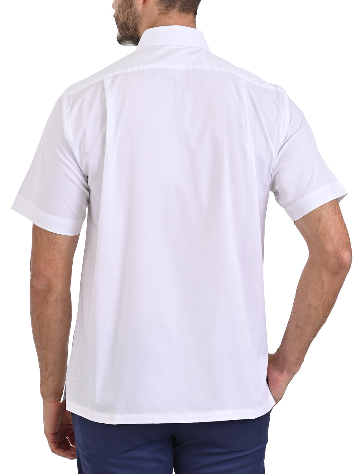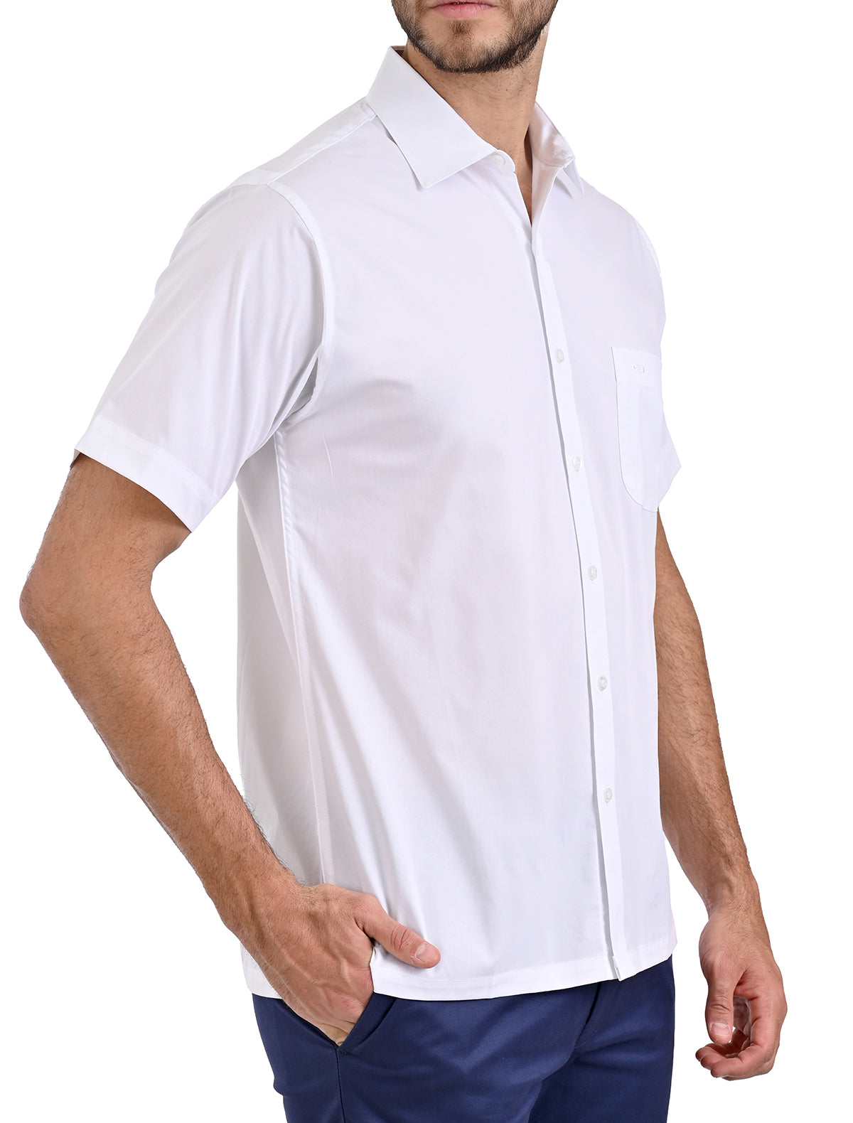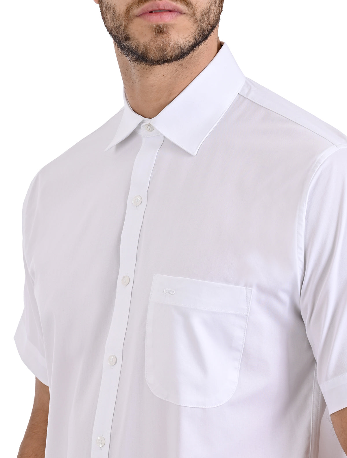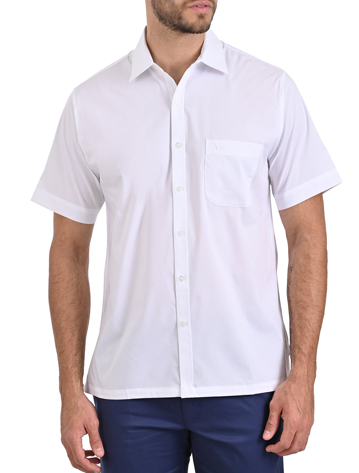 Descubre la versatilidad y comodidad de la camisa de vestir de manga corta Mariscal, perfecta para los días más cálidos. Elaborada con un 60% de algodón, 37% de poliéster y un 3% de elastano, esta prenda ofrece una mezcla ideal de suavidad, resistencia y elasticidad. Su diseño liso y la práctica bolsa en el pecho la convierten en la elección ideal para lucir un look profesional y fresco.