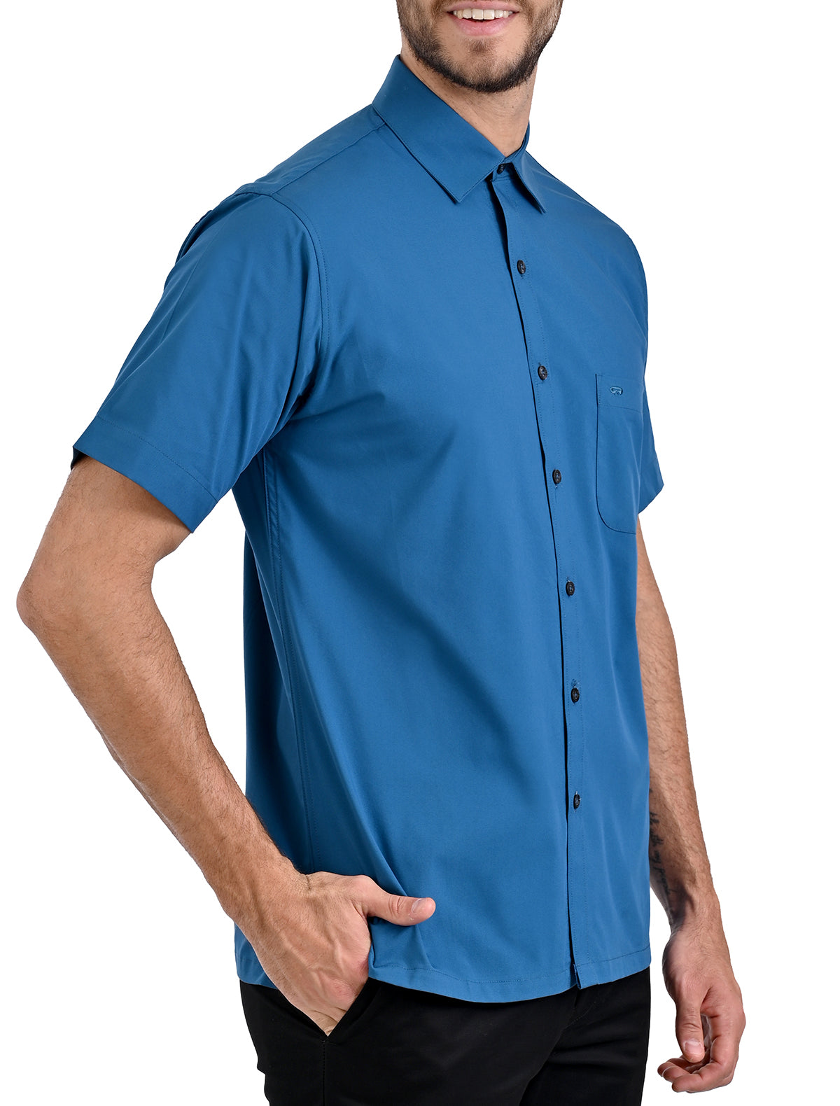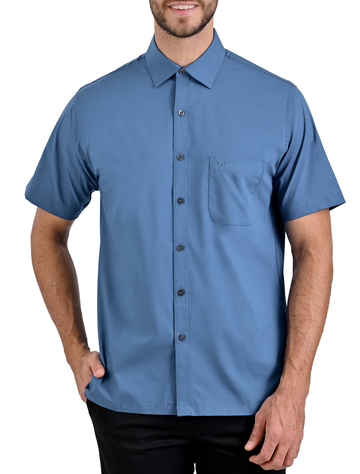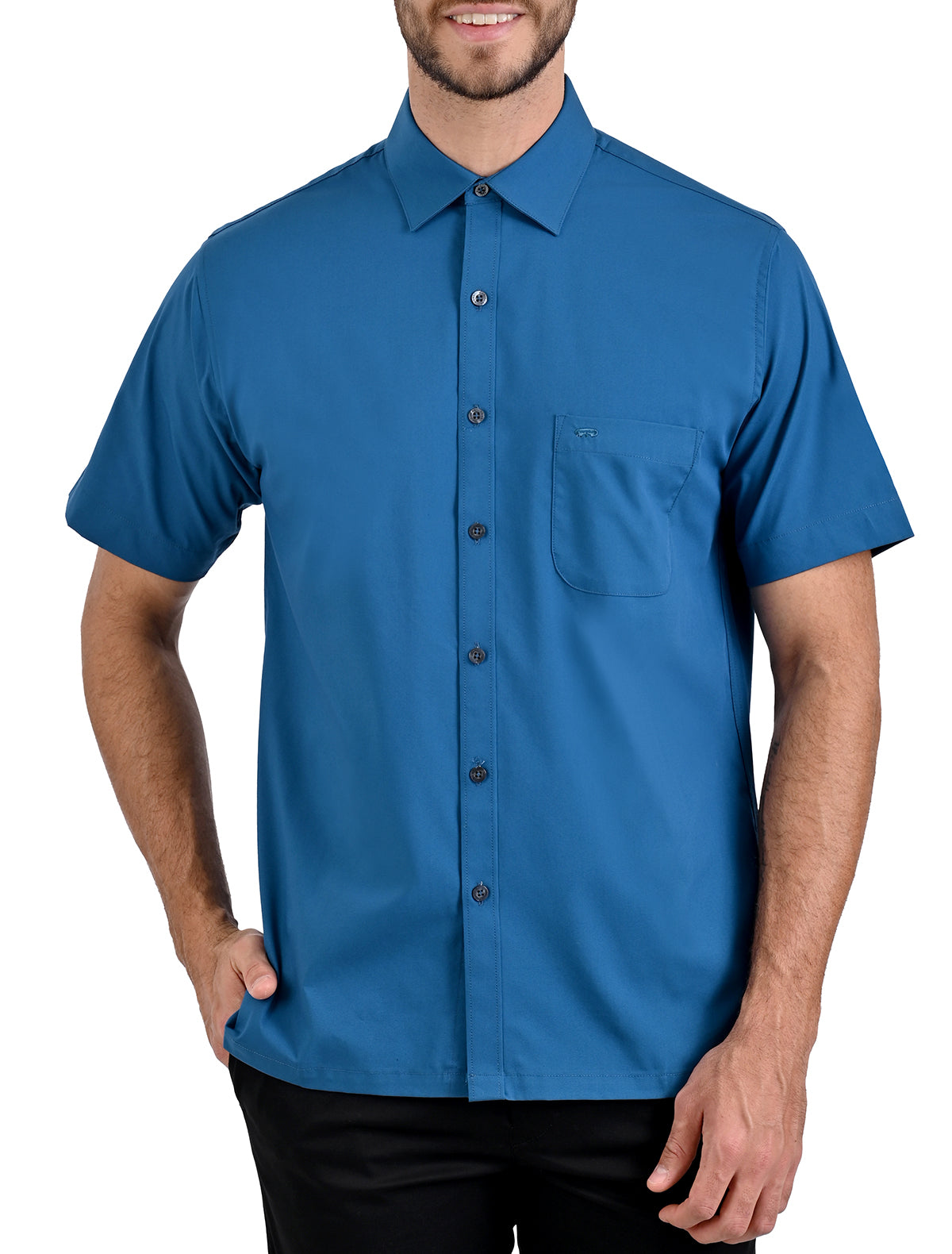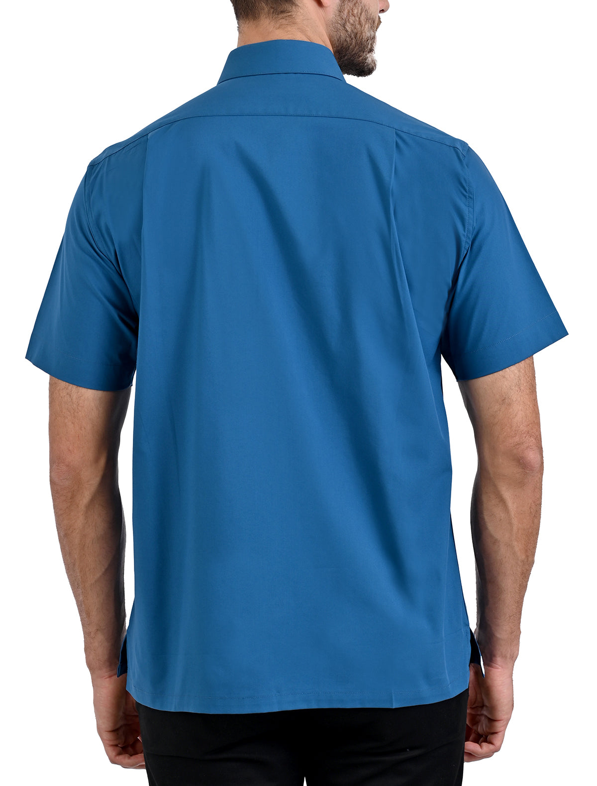 Descubre la versatilidad y comodidad de la camisa de vestir de manga corta Mariscal, perfecta para los días más cálidos. Elaborada con un 60% de algodón, 37% de poliéster y un 3% de elastano, esta prenda ofrece una mezcla ideal de suavidad, resistencia y elasticidad. Su diseño liso y la práctica bolsa en el pecho la convierten en la elección ideal para lucir un look profesional y fresco.
