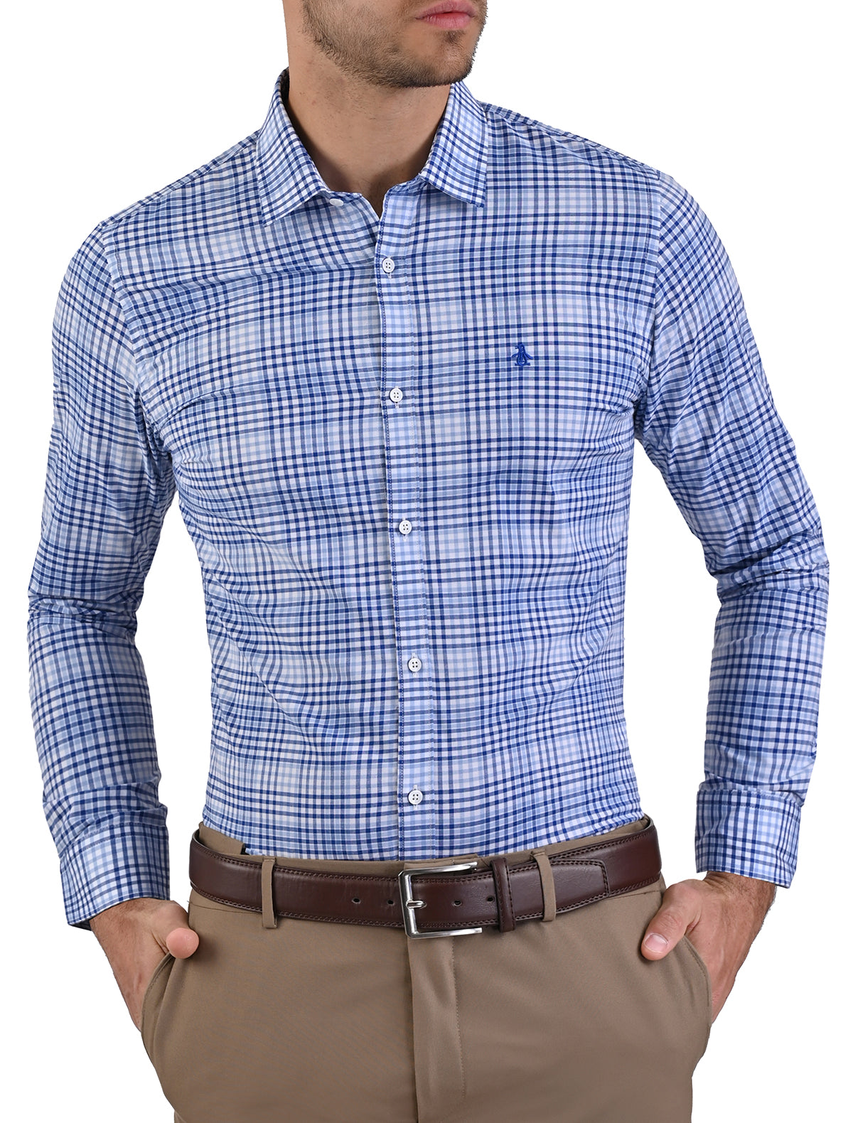 Camisa de Vestir Original Penguin con Diseño Azul Slim Fit